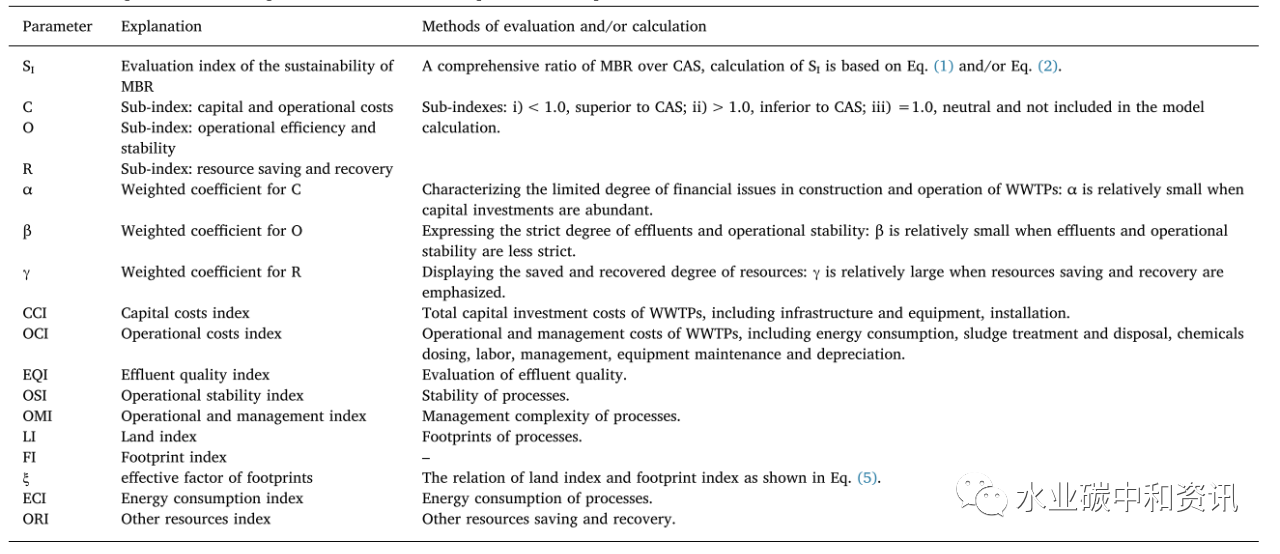 1 研究背景在環境問題備受關注的今天,污水排放標準日趨收緊,導致污水處理工藝選擇頗受關注??紤]到污水處理廠建設用地緊張等因素,膜生物反應器(MBR)因其單位體積生物量高、占地節省、出水水質好等優點迅速進入國人視野,已在許多新建或升級改造污水處理廠中獲得廣泛應用。然而,審視我國“雙碳”目標,污水處理廠也面臨著碳減排、甚至碳中和問題。MBR工藝似乎出水水質好、占地面積小,但其劣勢亦十分明顯。在MBR工藝工程應用中,膜污染以及由此而引起的膜通量下降所導致的能耗過高問題勢必會造成污水處理碳排放量強勢增加。而膜清洗/頻率高、膜絲(有機纖維膜)斷裂/更換頻繁等一系列問題也會間接增加碳排放量。MBR這些缺點使得基層用戶普遍否定這種工藝。然而,對MBR工藝利、弊持不同觀點的人群往往各執一詞,似乎很難彼此說服對方。因此,需要找到一種定量評價MBR工藝優劣的技術指標或評價標準。研究從MBR工藝優、劣兩方面因素入手,充分考慮經濟、社會、環境三方面綜合效應,通過建立與傳統工藝相比的評價模型,揭示出MBR工藝優、缺點,并評價其可持續性。