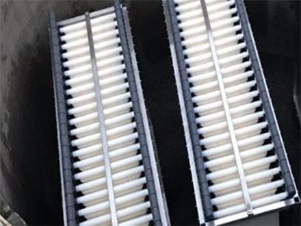 為了確保膜分離裝置運行時膜面流速所需的空氣量,每個膜支架設置為11-12L/min(平板膜)
