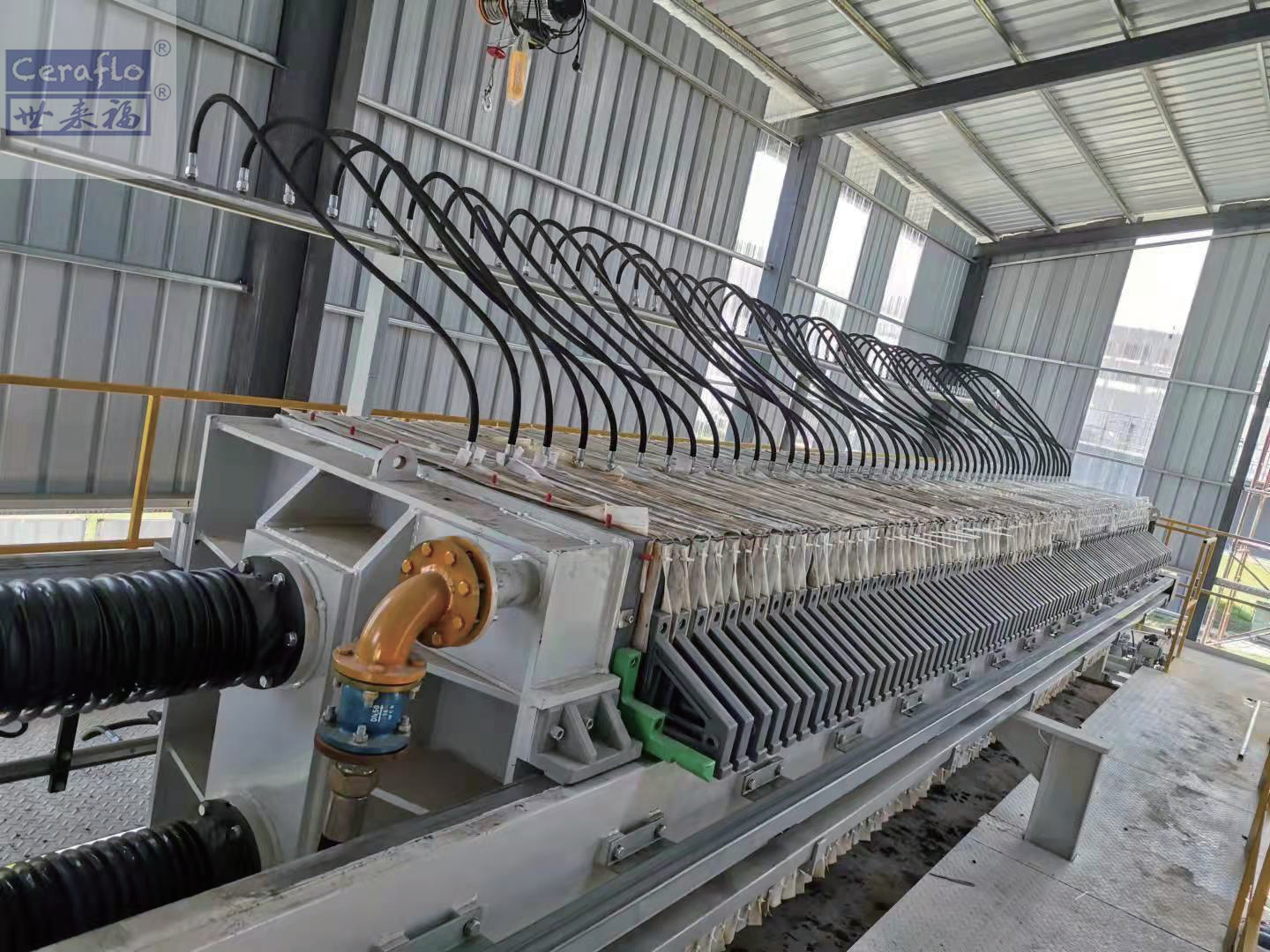 2、采用特殊橡膠濾板、含水率一次降至 40%以下
